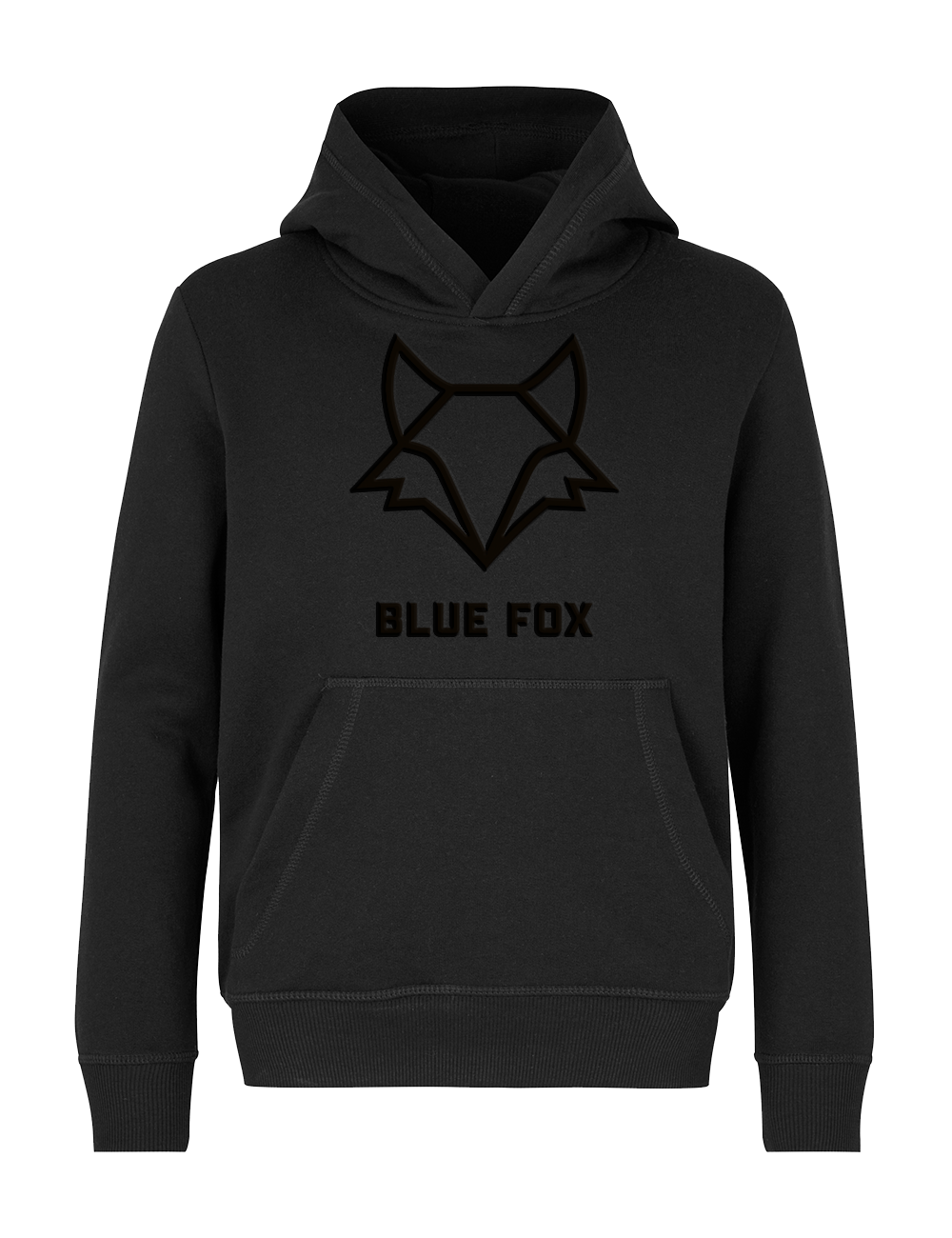 Denne hoodie er lavet med et mørkt puff tryk af ræven fra Herning Blue Fox. Trøjen er lavet i bomuld, og er som helhed lidt mere diskret, og kan bruges på arbejde, til sociale arrangementer eller noget tredje. Puff trykket på fronten giver hoodien en ekstra dimension.