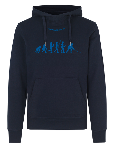 Farverig evolution fra primitivt menneske til toptunet ishockeyspiller. En lækker hoodie med high-cut halsafslutning, snøre i hætte og rib ved ærme og bund.