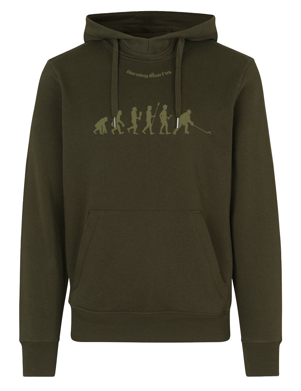 Evolutionen fra primitivt menneske til toptunet ishockeyspiller. Her med tryk i mere diskret tone-i-tone. En lækker hoodie med high-cut halsafslutning, snøre i hætte og rib ved ærme og bund.