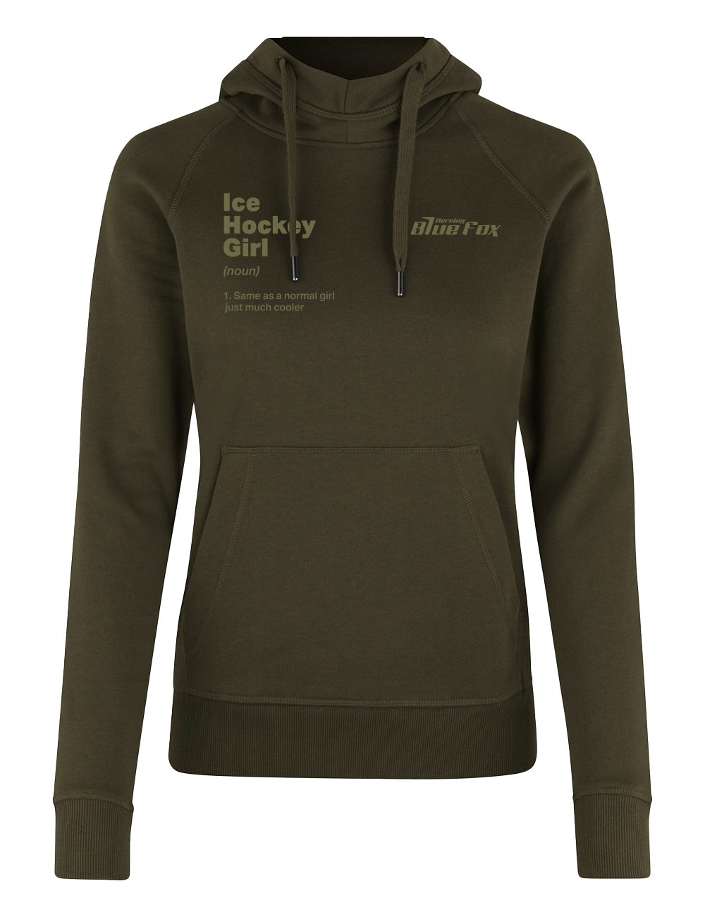 Vis at du er selve ordbogsdefinitionen på en ishockeypige. Denne hoodie har en kvindelig pasform, som øger komforten og gør den ekstra behagelig at have på.