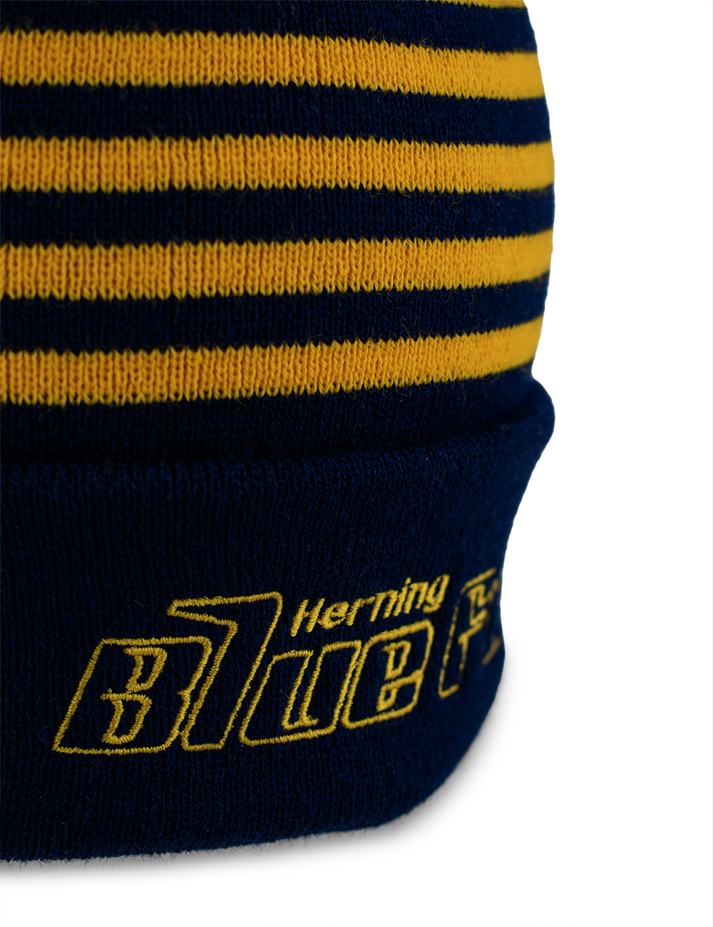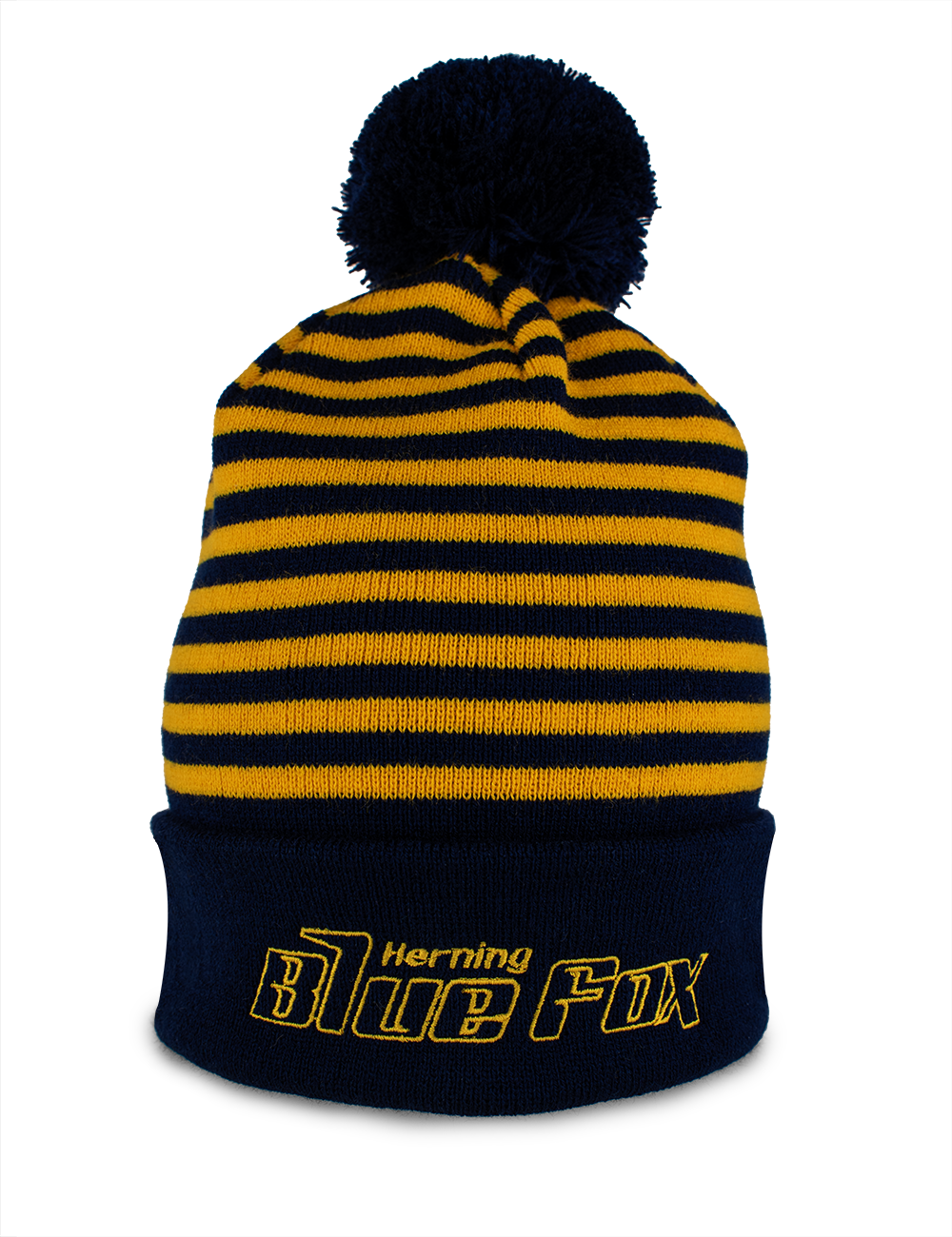 Vis din kærlighed for klubben med denne Blue Fox hue. Den er lavet i de klassiske Blue Fox farver, navy og gul, en kvast på toppen og Blue Fox logo på fronten. Huen er ideel til de kølige måneder eller en udebanetur.