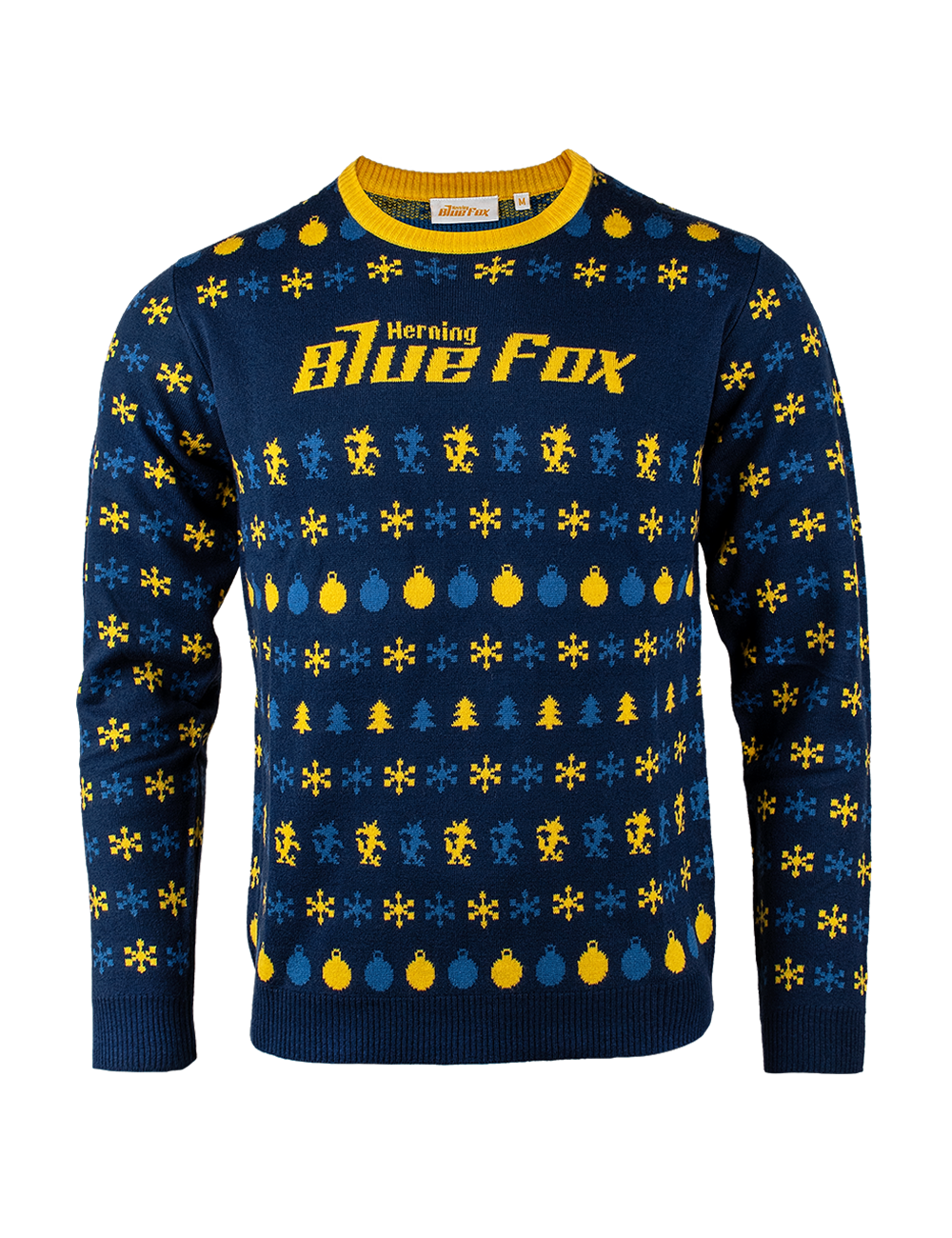 Bliv klar til dette års julefrokoster med denne Blue Fox Julesweater. Den er lavet med ribkant i ærmer og talje, hvilket er med til at sikre en god pasform. Trøjen er dejlig varm, og vil med garanti være med til at skabe god stemning.