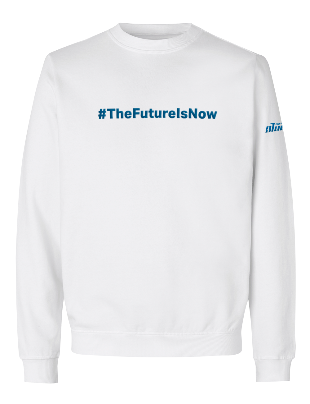 Sweatshirt med det nye mantra #TheFutureIsNow lavet i specielt 3D puff-tryk som træder lidt ekstra frem på sweatshirt.