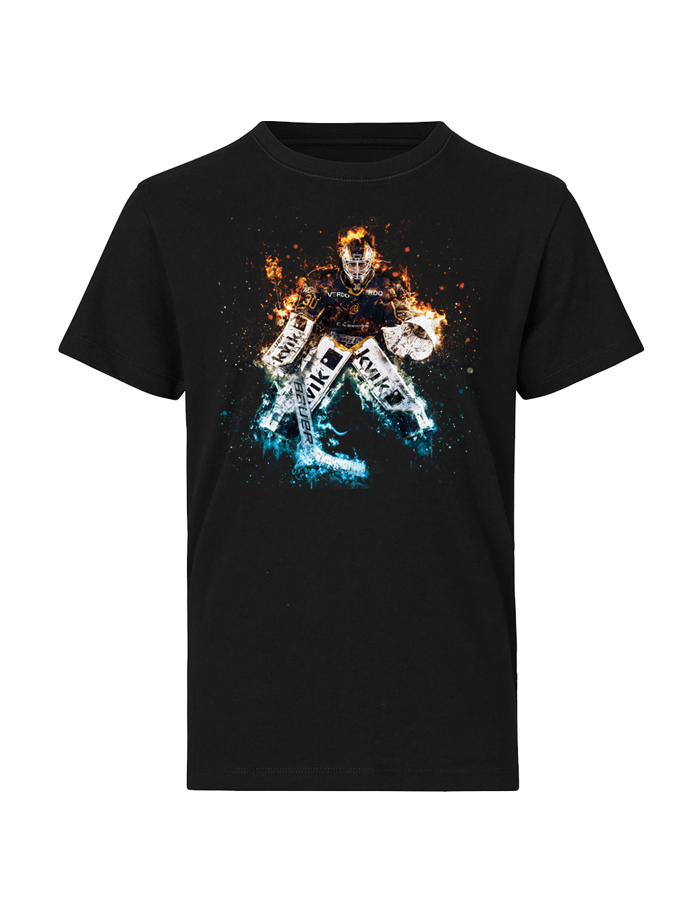 Denne trøje er en hyldest til vores amerikanske målvogter #30 Mac Carruth a.k.a. "Macmillian Carruth". En sand helt i målet til glæde for både holdet og fans. Han har en evne til at være iskold på isen, og samtidig være on fire, hvilket denne trøje illustrerer.