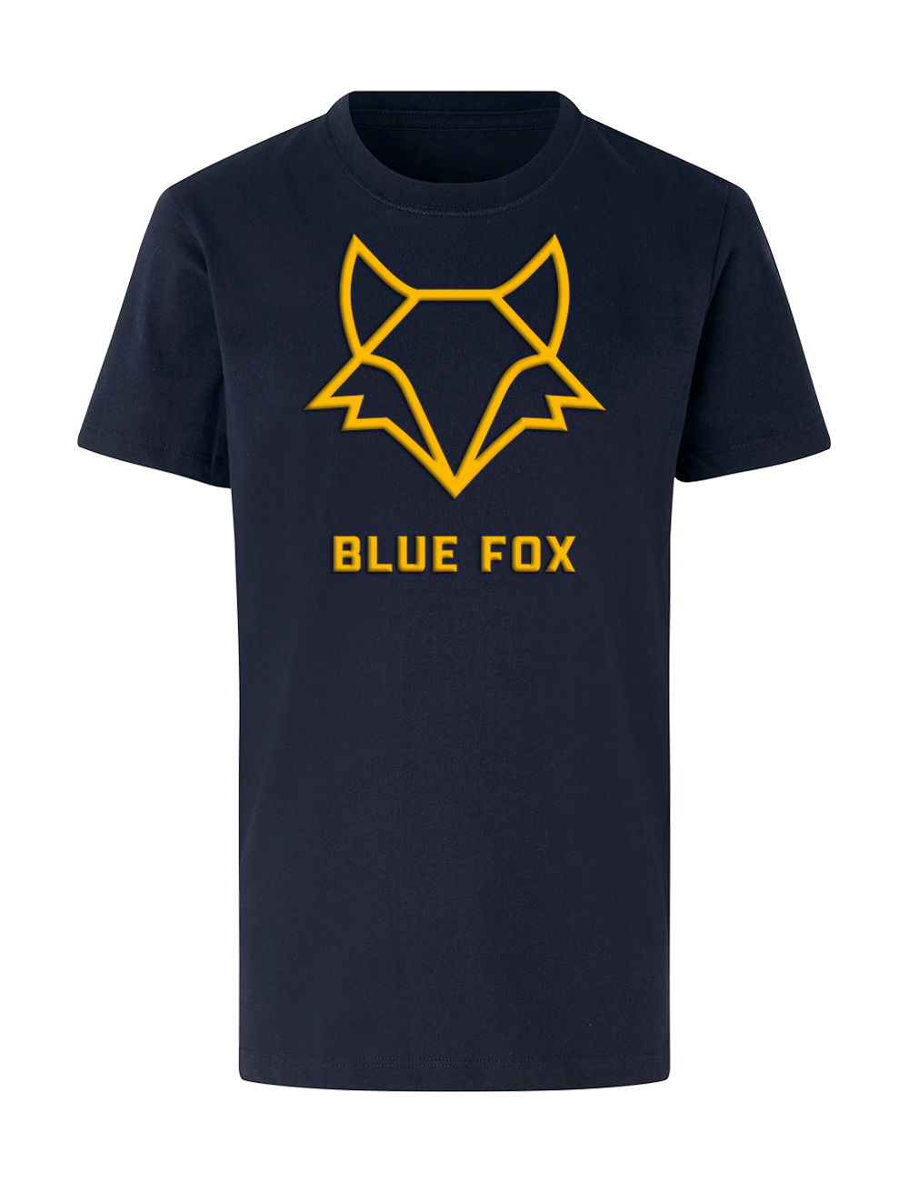 Ræven og resten af holdet fra Herning Blue Fox er klar til at indtage isen, og kæmpe for en sejr. Kæmp med fra sidelinjen med denne trøje, som er lavet i de klassiske Blue Fox farver. En flot navy t-shirt med gult puff tryk, som træder frem på trøjen.