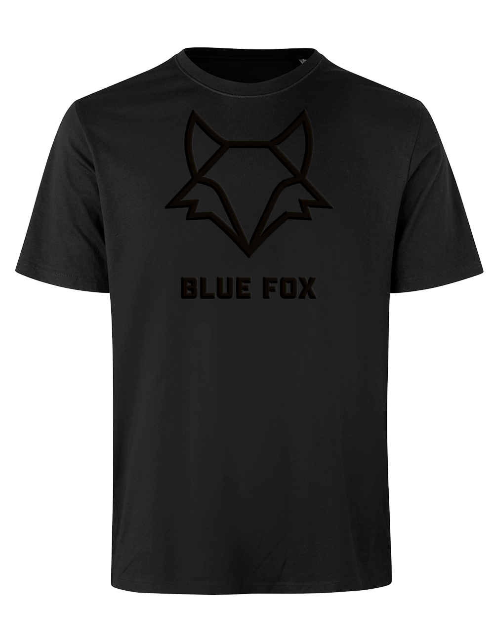 Denne t-shirt er lavet med et mørkt puff tryk af ræven fra Herning Blue Fox. Trøjen er lavet i sort økologisk bomuld, og er som helhed lidt mere diskret, og kan bruges på arbejde, til sociale arrangementer eller noget tredje. Puff trykket på fronten giver trøjen en ekstra dimension.