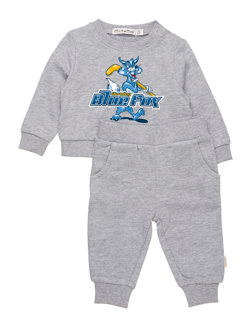 Dette bløde sweat sæt til de mindste består af en sweatshirt med ribkant ved halsudskæring, kant og håndled. Den har trykknapper på skulderen. Bukserne er lavet med ribkant ved ankler og talje samt lommer foran. Dette sæt vil med garanti blive en favorit hos enhver Blue Fox og Victor fan.