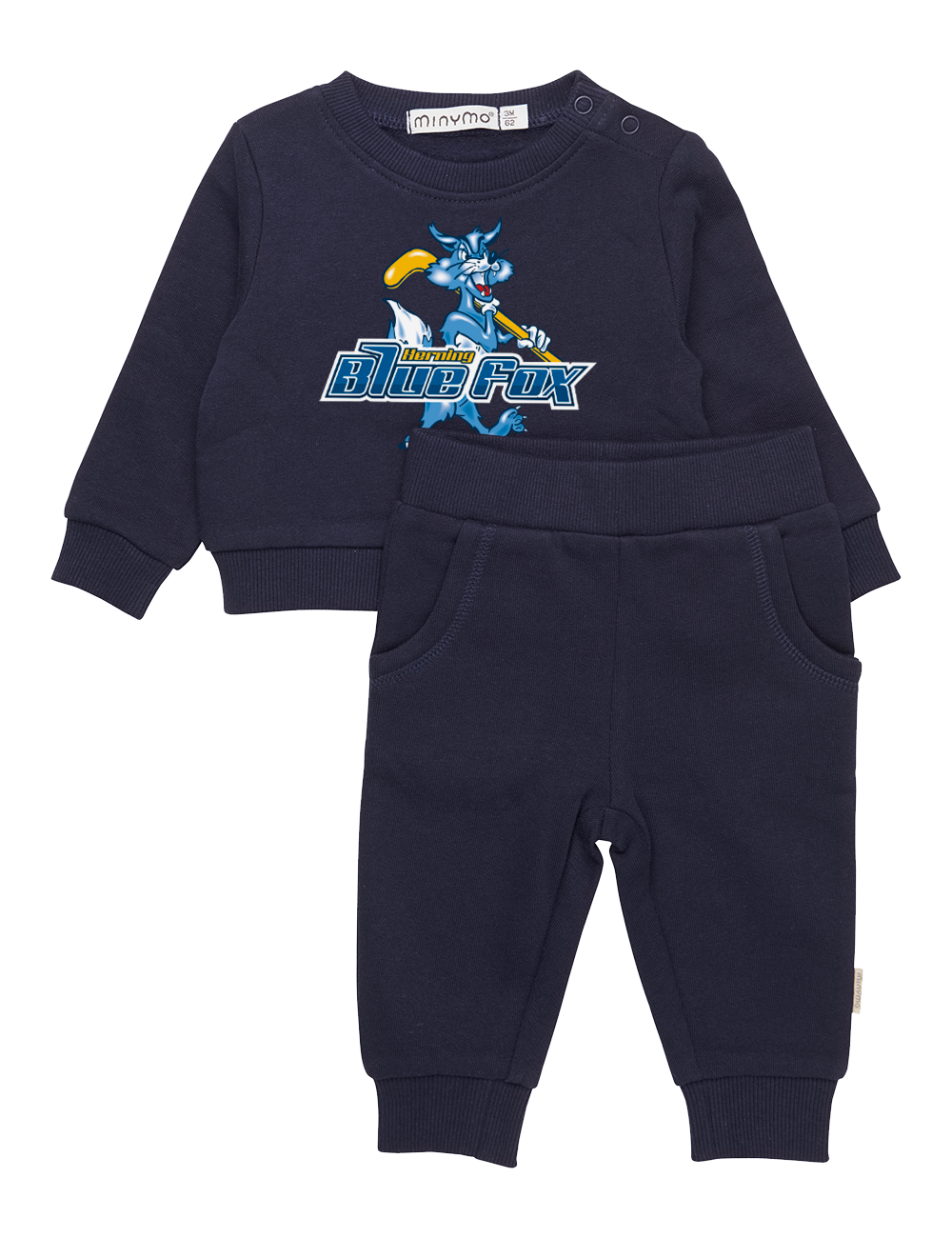 Dette bløde sweat sæt til de mindste består af en sweatshirt med ribkant ved halsudskæring, kant og håndled. Den har trykknapper på skulderen. Bukserne er lavet med ribkant ved ankler og talje samt lommer foran. Dette sæt vil med garanti blive en favorit hos enhver Blue Fox og Victor fan.