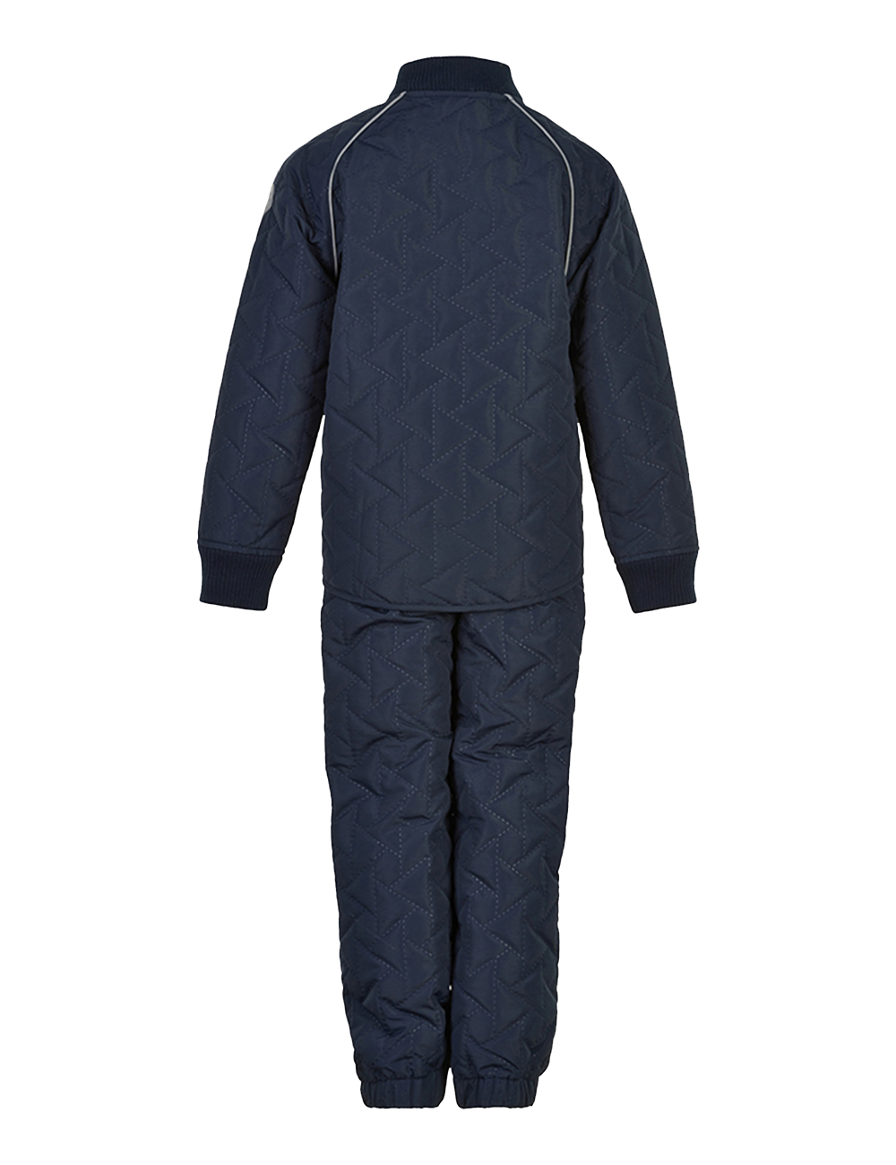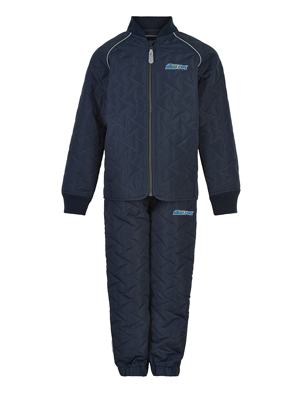 Et lækkert termosæt som består af bukser og jakke. Begge dele er vind og vandtæt, og er ideel til det skiftende vejr. Sættet er lavet i et behageligt materiale, som er rart for barnet at have på. For at øge komforten er der elastik i både talje og anklerne på bukserne. Derudover har jakken to forlommer, rib ved ærmerne og omkring halsen. Vigtigst af alt er selvfølgelig det fine Blue Logo logo, som både er på jakke og bukser.