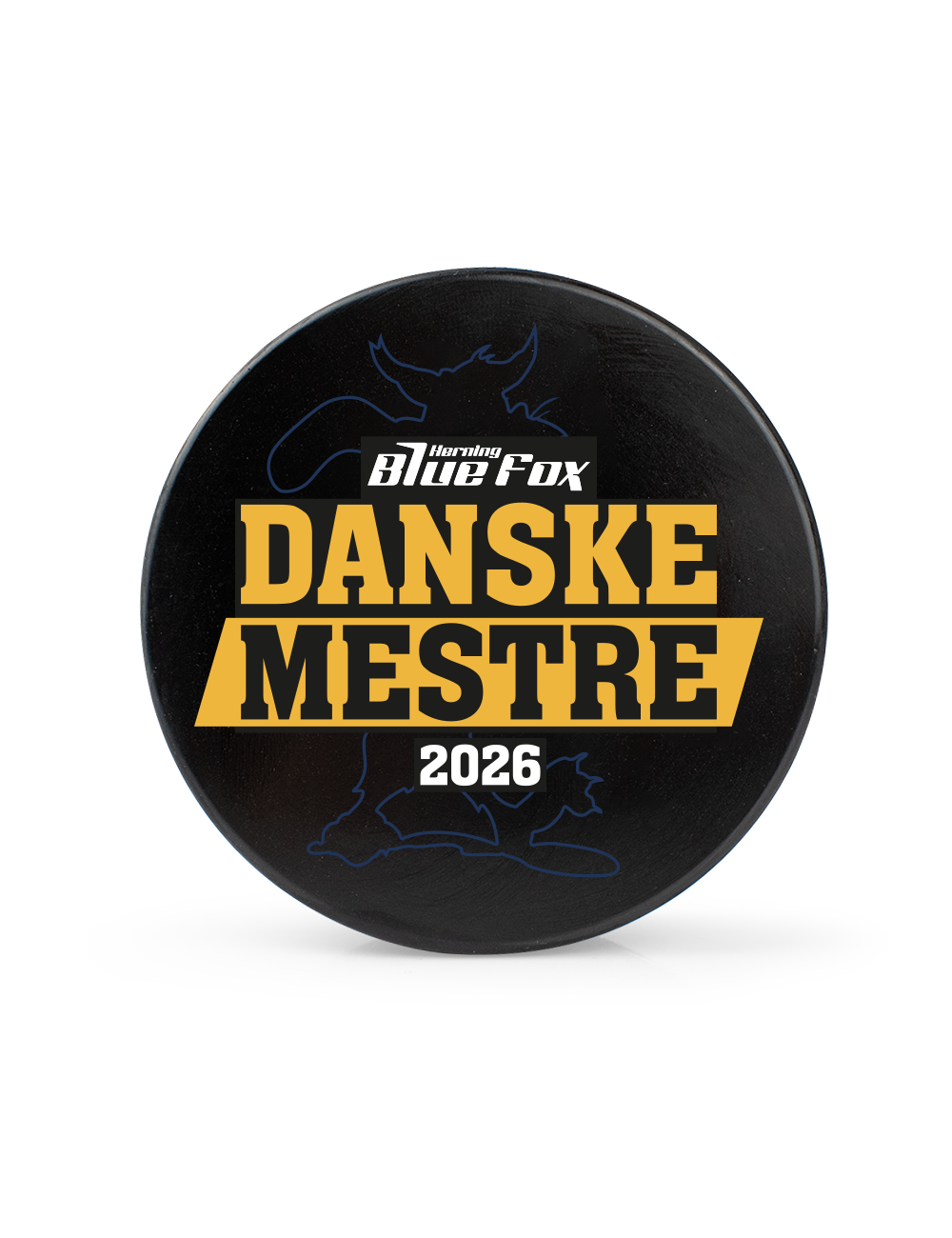 Fejr et uforglemmeligt mesterskab med denne officielle Blue Fox puck i Danske Mestre 2026-design. En klassisk puck med et stærkt visuelt udtryk, der hylder sæsonen, hvor Herning Blue Fox skrev sig ind i historiebøgerne.