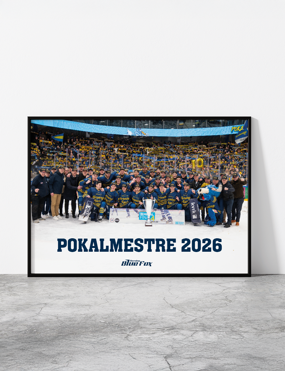 Blue Fox blev pokalmestre i 2026. Stemningen fra sejren og fejringen er blevet foreviget på denne plakat.