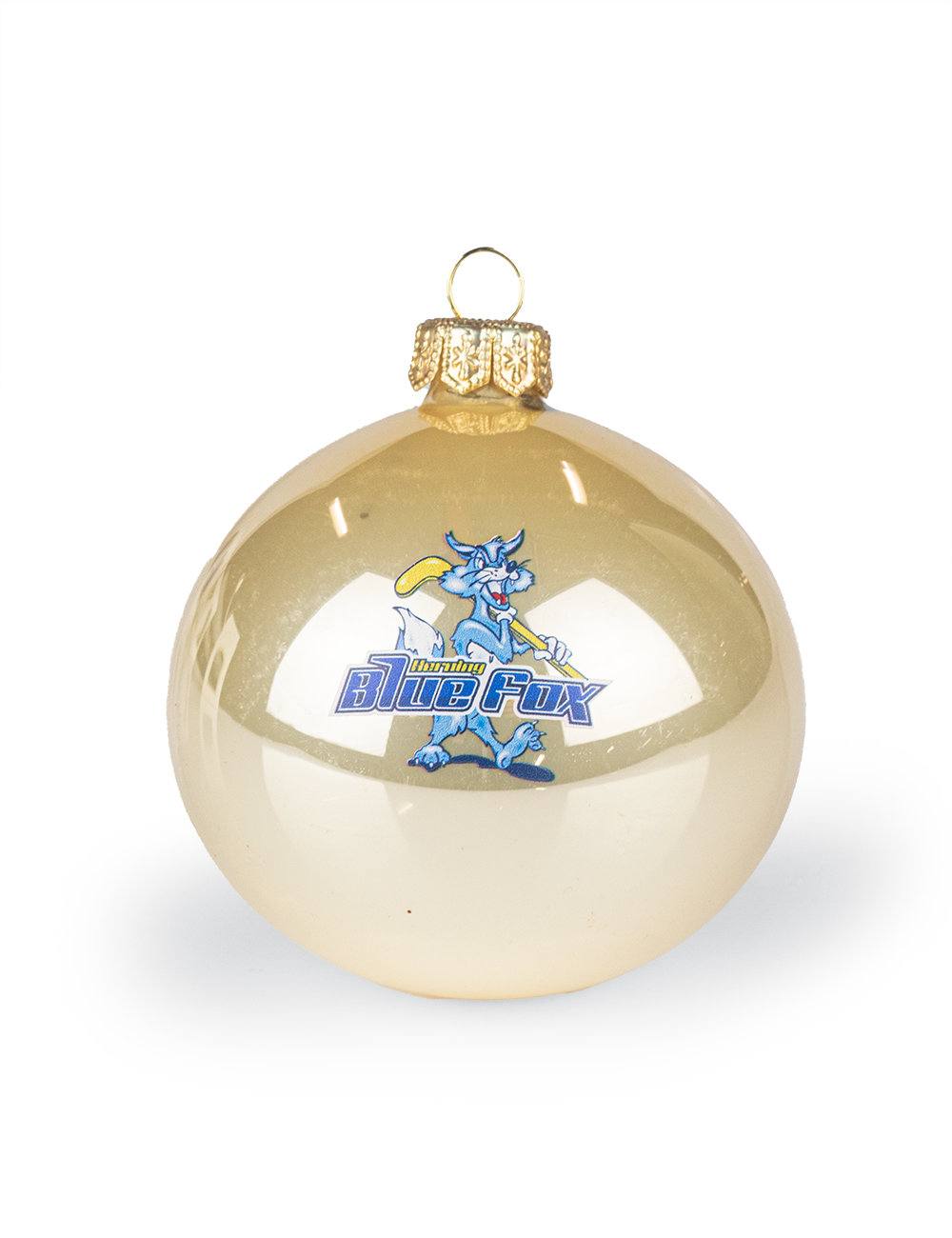 Blue Fox julekuglerne vil pynte på ethvert juletræ, og er en ideel julegave til en ægte Blue Fox fan. Julekuglerne er lavet i tre forskellige farver; Blå, guld og hvid. Kuglerne er lavet i glas.