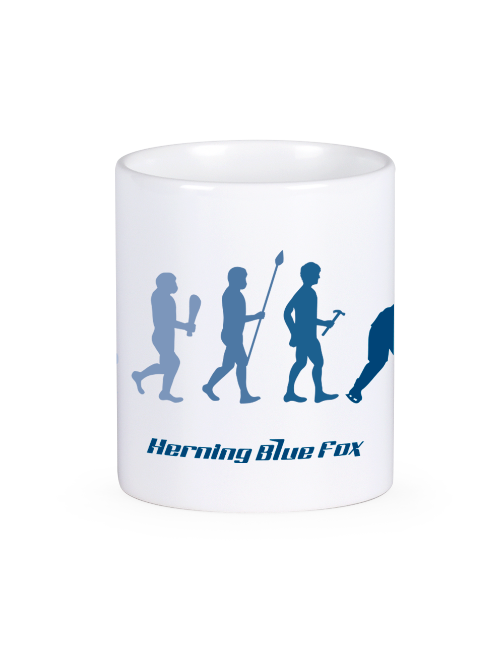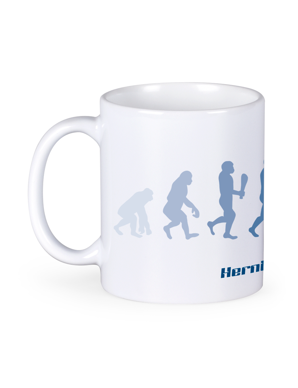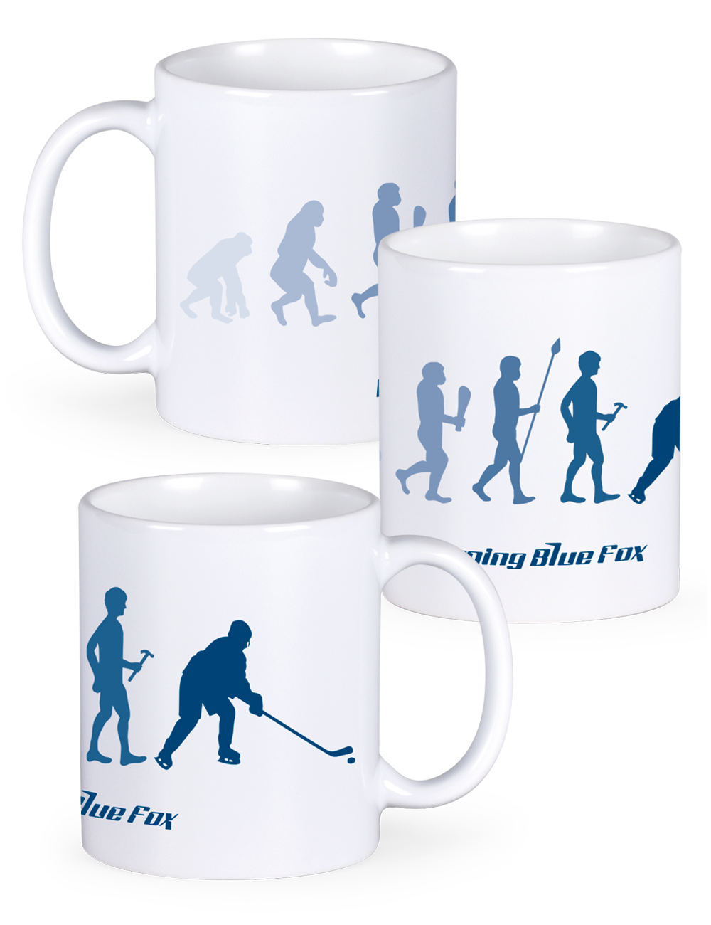 Krus med evolutionshistorien alle kender - fra primitivt menneske til sofistikeret, avanceret og toptrænet ishockeyspiller. Kruset er med hank, og er derfor ideel til varme drikke, såsom te, kakao eller kaffe.