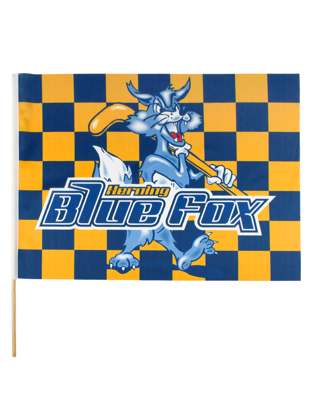 Med dette flag kan du være med til at tage stemningen til det næste niveau, når hele byens hold, Blue Fox, træder ind på isen. Dette supportflag er designet i de klassiske Blue Fox farver i tern, og med Victor i front. Flaget har en perfekt størrelse, og ingen vil være i tvivl om, at Blue Fox er GUL OG BLÅ.