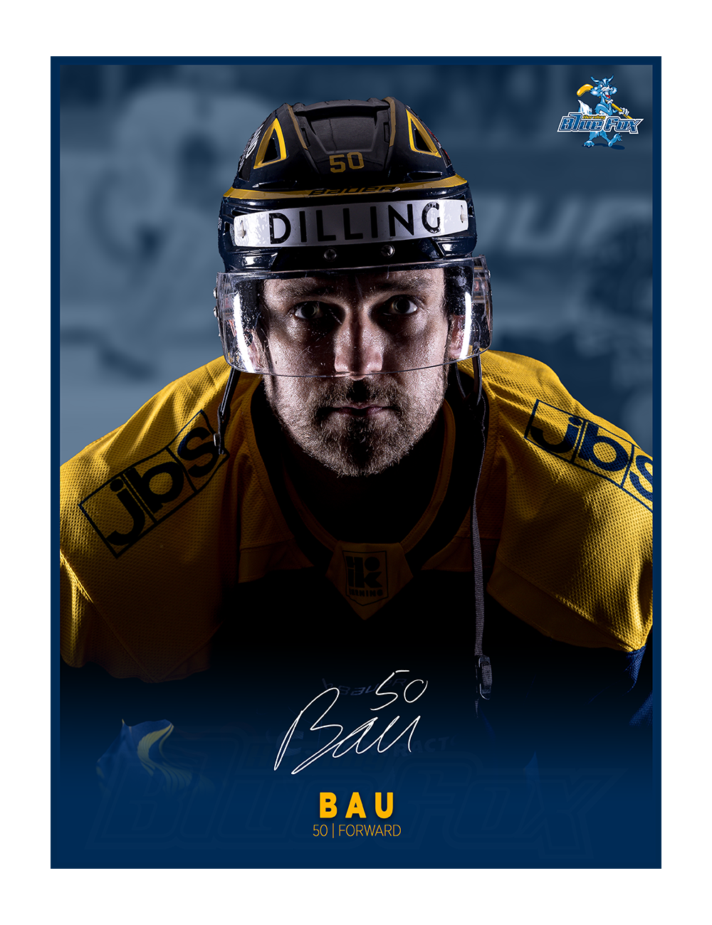 Med denne officielle Blue Fox spillerplakat kan du tage en del af kampintensiteten og holdånden med hjem. Plakaten fremhæver en af holdets profiler i et stærkt og stemningsfuldt udtryk, der emmer af fart, fokus og fight på isen.