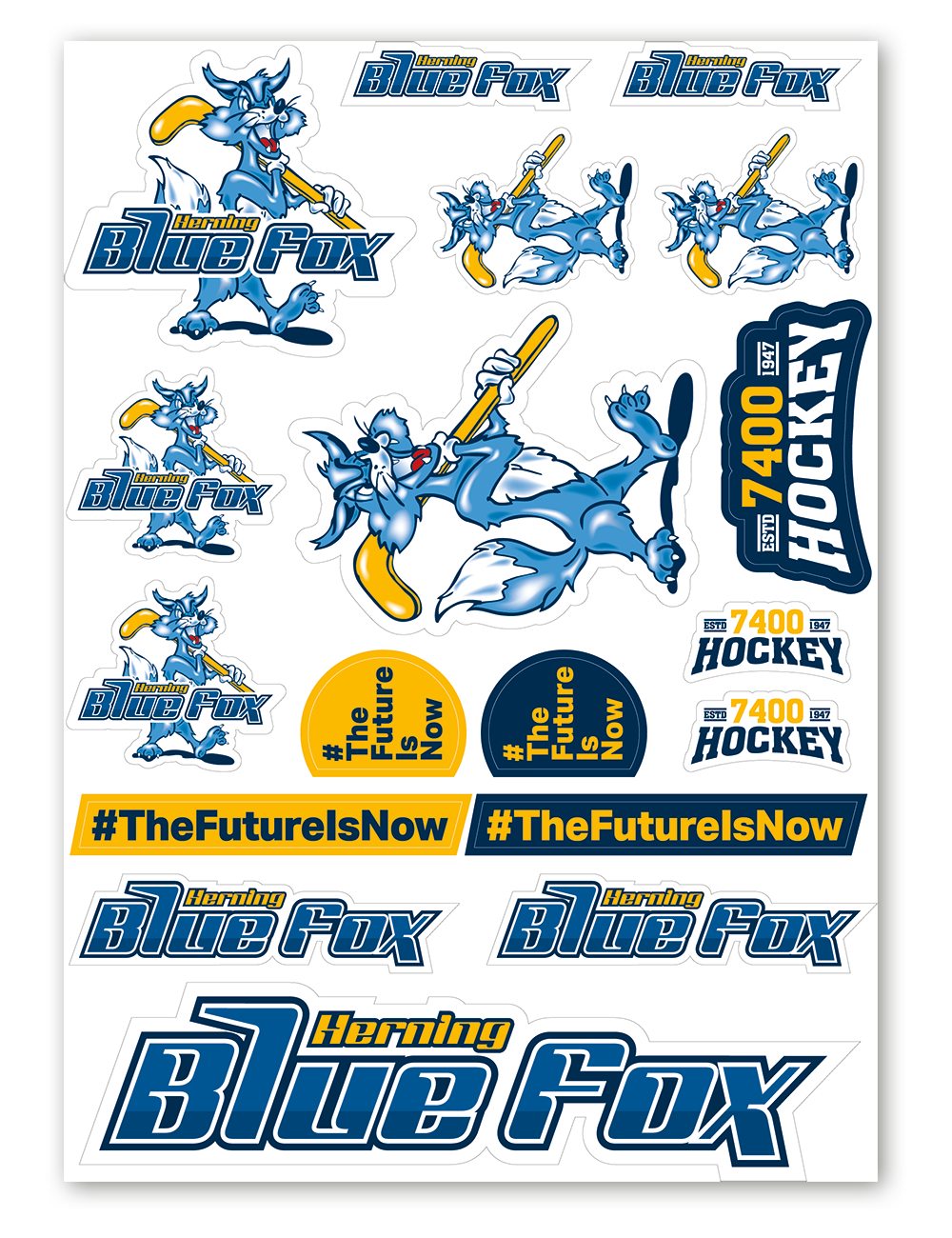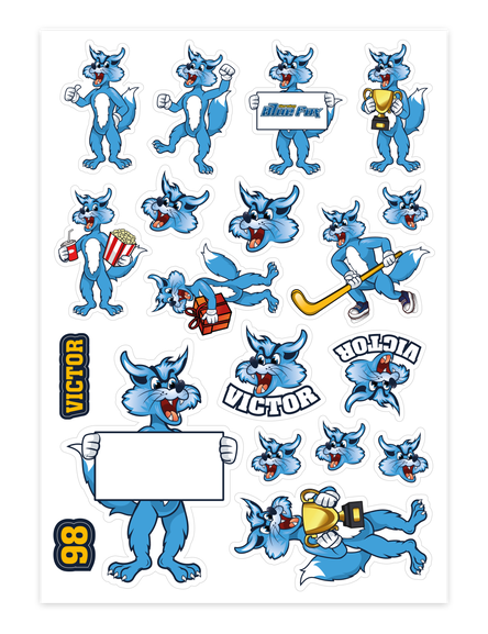 Dette A5 ark er fyldt med 18 seje Blue Fox klistermærker. Der er forskellige størrelser og designs som Victor, #TheFutureIsNow, det klassiske logo og meget mere.